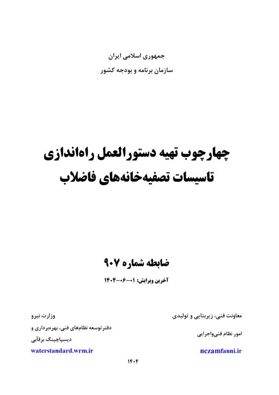 عنوان : چارچوب تهیه دستورالعمل راهاندازی تاسیسات تصفیهخانههای فاضلاب