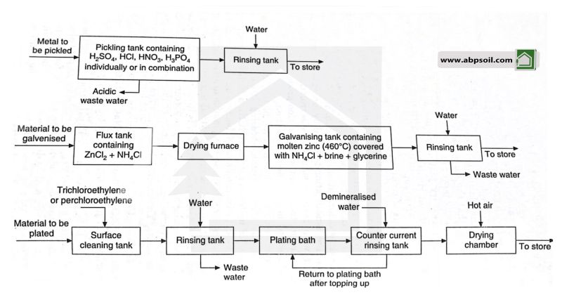 با توجه به پروسه تولید، واحد های تولید کننده پساب صنعتی در کارخانه های آبکاری فلزات به قرار زیر است: