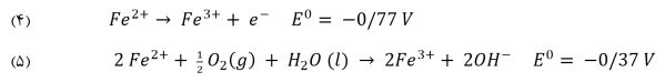 آهن فروس توسط اکسیژن اتمسفری یا اکسیداسیون آند به Fe3+ اکسید می شود و واکنش های آن به شرح زیر می باشد: